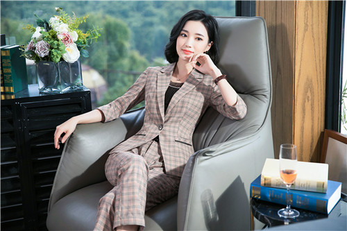 8005粉格子西装