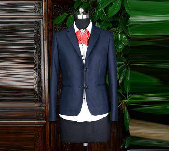 鉴于西装在对外活动中往往充当正装或礼服的用途,面料的选择应力求高档。藏蓝色西装是佳选,灰色或棕色也可以,而黑色的适合在庄严、肃穆的礼仪性活动中穿着。西装可分:工作用的西装、礼服用的西装、休闲用的西装等,对一般人来说,同样一套西装装配上不同衬衫、领带,差不多就可以每天穿着并应付多数的交际活动了。正式西装XZ-M09