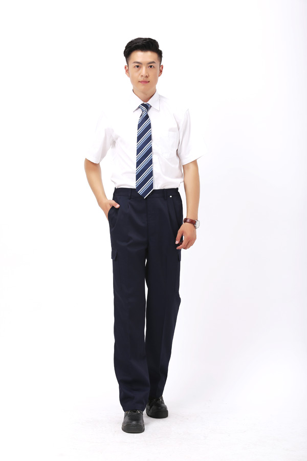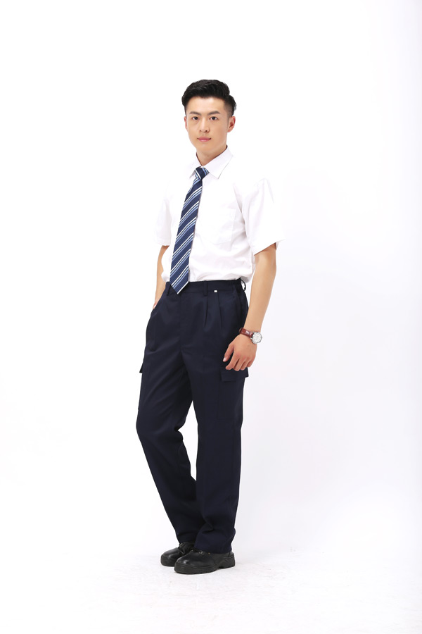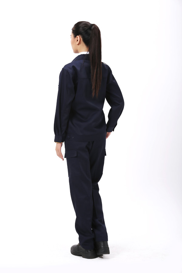 7.内袋:采用45度斜纹包边布,对工作服内部毛边进行包缝,使工作服内外一致,更精致,更美观。