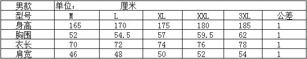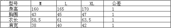 尺码表: