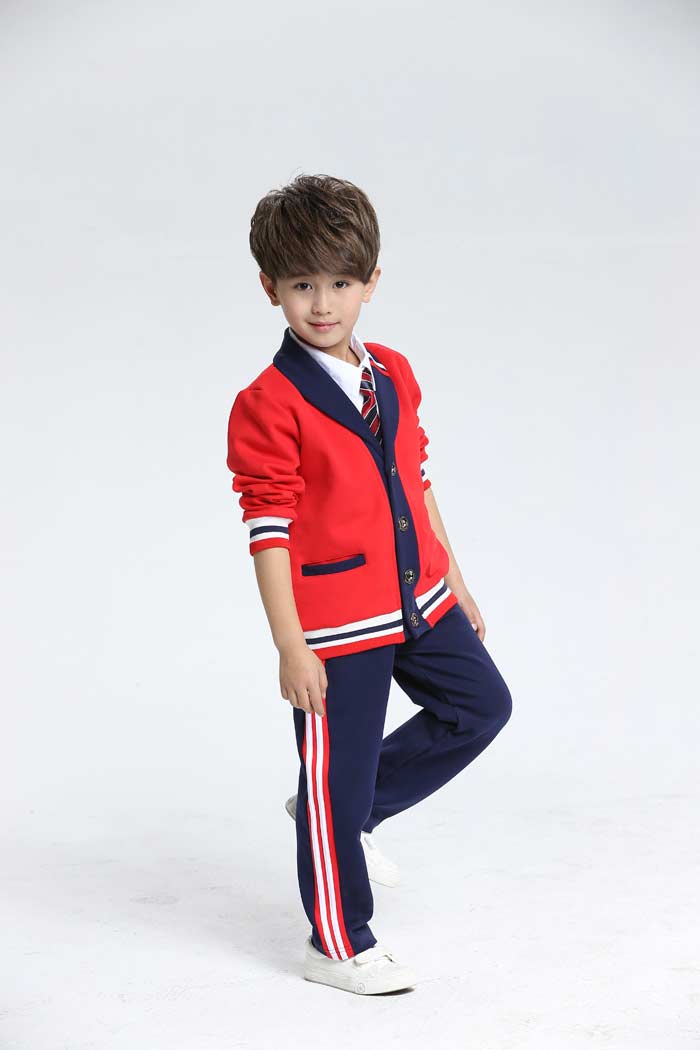 男生校服设计需要注意耐热性,如纯棉织品耐热能良好,在高温下时只会引起织物上水分蒸发,不会损伤纤维,做成校服穿着更好,洗涤印染等对织品都无影响,由此对提高了纯棉织品耐洗耐穿服用性能。XF-08男生校服设计